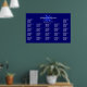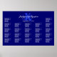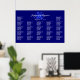 Navy blue, monogrammed wedding reception seating chart poster is 24 x 36 inches.  Dark blue background with white text and bright blue initial. Seat guests by last name initial or by table number / name.   Delete any unneeded sections.