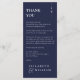 An elegant minimalist navy blue wedding celebration thank you reception card. Personalised with your special thank you message set in stylish typography. A special keepsake thank you to your guests. Designed by Thisisnotme©