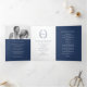 Navy blue monogram wreath story dedication wedding Tri-Fold programme
