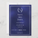 Navy blue monogram wreath wedding save the date