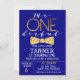 Looking for a Mr one-derful 1st birthday invitation for your little boy? This navy blue and faux gold design features a faux gold bow tie and word on a navy blue background. The back of the invitation features a faux gold foil polka dot pattern.