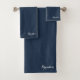 Navy Blue Name Modern Elegant Monogram Boho Bath Towel Set