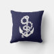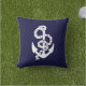 Navy Blue Nautical Anchor Outdoor Throw Pillow