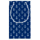 Navy Blue Nautical Anchor Pattern Small Gift Bag