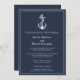 Celebrate your love with this Navy Blue Nautical Anchor Wedding Invitation, a perfect choice for maritime theme weddings and coastal wedding stationery. This elegant invitation features a classic nautical anchor design, paired with wedding details and bride and groom names in a stylish blend of elegant script and modern typography. The simple layout exudes timeless sophistication, capturing the essence of a nautical wedding theme. Crafted with premium materials, this invitation invites guests to your special day with coastal charm and refined elegance.