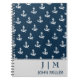 Navy Blue Nautical Boat Anchor Pattern Monogram Notebook