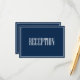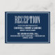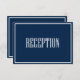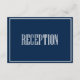 This modern - vintage wedding reception features white modern typography and calligraphy typography in navy blue with white boarders. This is a part of a wedding invitation set.