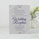 Navy Blue on Grey Silver Frills Wedding Reception Invitation