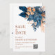 Navy Blue Orange Boho Floral Elegant Wedding Save The Date