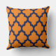 Navy Blue & Orange Quatrefoil Ikat Pattern Cushion