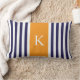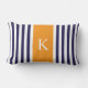 Navy Blue Orange Stripes Monogram Lumbar Cushion
