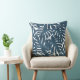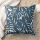 Navy blue palm leaves throw pillow
