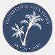 Navy Blue Palm Tree Beach Tropical Wedding Classic Round Sticker