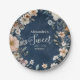 Navy Blue Pastel Wildflowers Sweet 16 Paper Plate