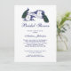 Navy Blue Peacock Bridal Shower Invitation. BlissfulWedding © at Zazzle. These gorgeous invitations are perfect for a vintage peacock themed bridal shower. Two beautiful peacocks on vintage banner and text in a dark blue font all on a white background, create a unique, stylish romantic bridal shower invitation. Other colours available.