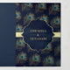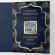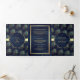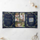 Navy Blue Peacock Feathers QR Code Wedding Tri-Fold Invitation
