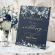 Navy Blue Peonies Gold Calligraphy Welcome Wedding Pedestal Sign