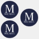 features personalised monogram and name in white classic serif font style on navy blue background.