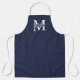 featuring personalised white monogram in classic serif font style with box of name in the middle of monogram on navy blue background.