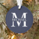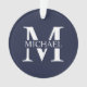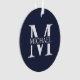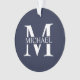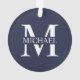 Personalised Monogram and Name Gifts featuring personalised white monogram in classic serif font style with box of name in the middle of monogram on navy blue background.