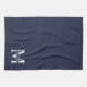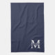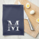 featuring personalised white monogram in classic serif font style with box of name in the middle of monogram on navy blue background.