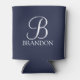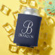 Navy Blue Personalised Script Monogram and Name Can Cooler