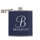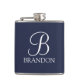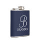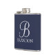Navy Blue Personalised Script Monogram and Name Hip Flask