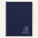 features personalised monogram in white classic script font style and name in white classic serif font style on navy blue background.