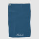 This navy blue personalized golf towel features a custom name, combining style and practicality for the golf course. Made from soft, absorbent material, it helps keep clubs and hands clean while adding a unique personal touch. Ideal for golfers seeking functionality with a classy, customized design.