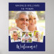 Create your own unique photo collage. Use four, 4 of your favourite photo. Personalise and add a name and age. A classic navy blue coloured background, white text.