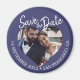 Navy Blue Photo Modern Script Save the Date Magnet
