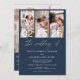 Navy Blue The Wedding of Modern Elegant QR code, Four (4) Photo Collage and Large Date Minimalist Wedding Invitation. The Wedding Invitation cards contain a modern typography that are elegant, simple and modern to use after you minimalist simple wedding day celebration.