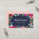 Colourful business card for an interior designer, event stylist, makeup artist or similar, featuring a frame of vibrant hand-drawn flowers in pink and purple against a dark blue background.