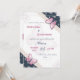 navy blue pink butterflies wedding invitation card