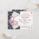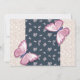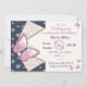 navy blue pink butterflies floral birthday party invitation