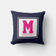 Navy Blue PINK DOTS Preppy Monogram NAME Custom Cushion