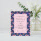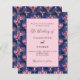 Navy blue pink florals retro wedding invitation