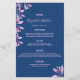 Navy blue pink florals wedding menu