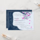 Navy Blue Pink Forest Love Bird Wedding Invitation