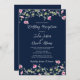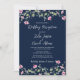 Navy Blue Pink Hibiscus Bloom Wedding Reception Invitation