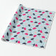 Navy Blue, Pink, Light Blue Ginkgo Leaves Pattern Wrapping Paper