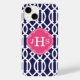 Navy Blue & Pink Modern Trellis Monogram Case-Mate iPhone Case