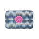 Navy Blue Pink Monogram Chevron Stripes Bathmat
