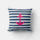 Navy Blue Pink Nautical Anchor Stripes Cushion