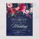 Navy blue burgundy flowers vintage roses wedding invitation template with QR RSVP code, just add your url address and zazzle will generate your code