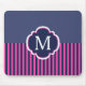 Navy Blue Pink Stripes Monogram Mouse Pad