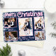 Navy blue background with pink accents and white whimsical snowflakes make for a unique Christmas card this season. Fill this card with 5 photos to send to family and friends this Christmas season. Writing is in white with pink accents to personalise with your family's name, first names and the year.