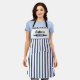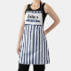 A modern trendy personalised apron that would make a perfect gift for any budding cook, chef or baker. A durable, evergreen pattern of navy blue vertical pinstripes on a white background covers most of this all over print apron. At the top of the apron is a plain white space with a template to personalise, simply replace the name in the text box to do so. Below the name is an image of a rolling pin in blue with the word "kitchen" in white lettering printed across it. A practical customised gift for that someone special.