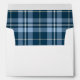 Navy blue plaid return address envelope which can be personalised with the inclusion of your details on the top back flap. The inside is in a navy blue plaid.