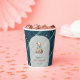 Welcome your little one with timeless charm. This baby shower paper cup features a sweet teddy bear with a blue ribbon. The background showcases a a traditional navy blue plaid inspired by Ralph Lauren style, with subtle hints of lime green and pink for a fresh, modern touch. Perfect for those who love a sophisticated yet cosy look, this paper cup blends tradition with just the right dash of contemporary flair.